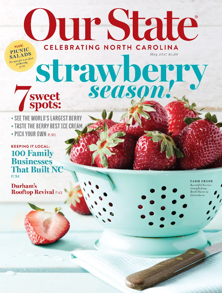 Summer is almost here and this month's issue of Our State Magazine includes Stacey's image as the cover! The strawberries locally sourced right here in Greensboro, are from Rudd Farm, and were so delicious and fresh! We also love the pairing with Stacey's favorite color. ;)