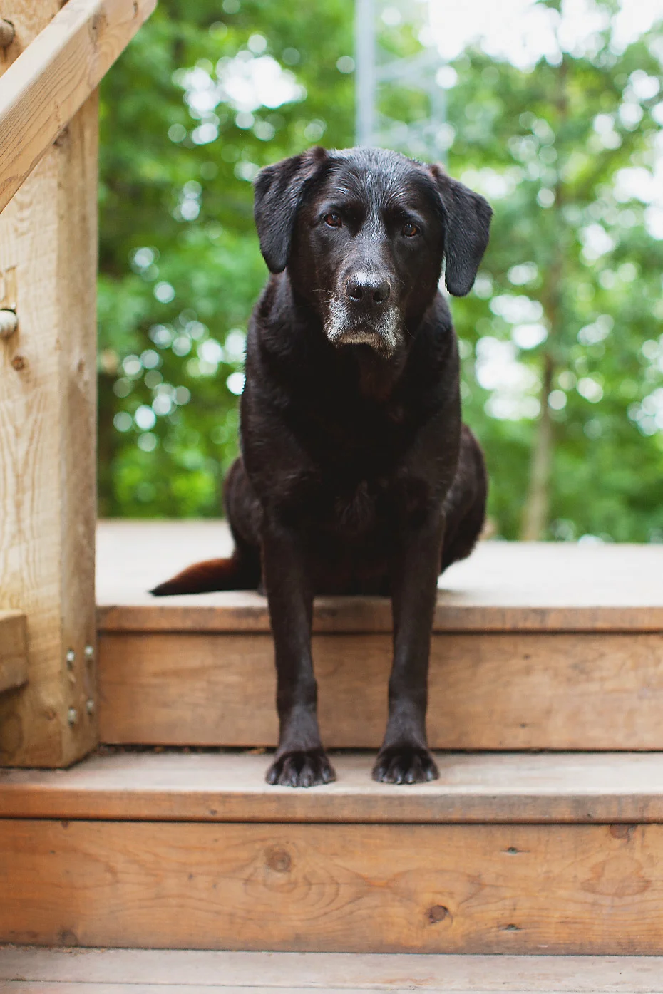 Stacey Van Berkel Photography I Black lab sitting on steps